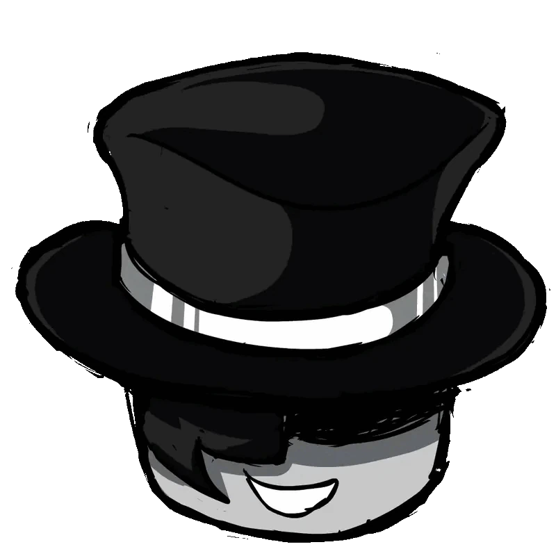 His appearance resembles a civilian wearing a black tuxedo with white sleeves, black jeans, a black „phantom of the opera”-esque mask on his right of the face, a top hat with a giant brim and his face painted white, he also wields a giant magical wand in his right hand. He’s also French.