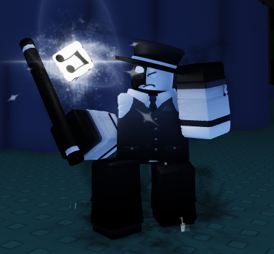 Copywrite is Artful’s second ability. It’s activated by pressing „E” on the keyboard. When activated Artful will put his right hand up while spining his wand and hold a gray cube in his left hand, and after a 2 second windup he’ll strike the cube with his wand, creating a music box at his current position, this process heavily slowes Artful down. This music box will slow the closest civilian in it’s range (Note that I sayed civilian and not civilians), the civilian will also get highlighted to Artful. The music box can be destroyed, but it’s health does not drain passively. There can only be 2 music boxes on a map at a time, and trying to make more will result in nothing happening. This ability has a 35 second cooldown.