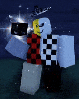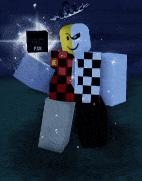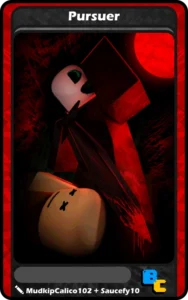 Hardest Game is a skin for Pursuer that is based on „The World’s Hardest Game”, and is a variant of the Maze Guy skin. This skin makes Pursuer’s body look like various elements from „The World’s Hardest Game”, his head being the green goal, his eyes having the red cube that’s the player character in TWHG, and his body having a lot of checkerd tilles with blue and yellow circles being scattered around them, with the blue circles being the enemies in TWHG, and the yellow circles being the thing the player must collect to finish certain stages in TWHG. His sword is also replaced with a piece of the game and when stunned his face will display a taunting message that is similar to the one in TWHG when going to a new stage. The skin costs 900 points and this variant costs 600 points, so 1500 points in total.