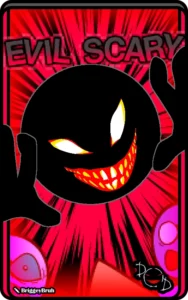 His appearance resembles as a figre with a black torso and a white head that has neon green eyes and teeth.