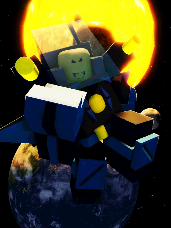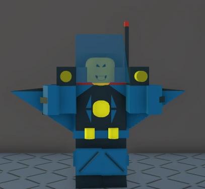 Futuristic is a skin for Killdroid that makes him look more futuristic. It give Killdroid a blue body that looks like the one V1 from Ultrakill has, two triangular wings, a yellow head with a devious face that is covered with a triangular space helmet. It also gives him some retro animations, and makes his killbots have the same face he has. This skin costs 800 points.